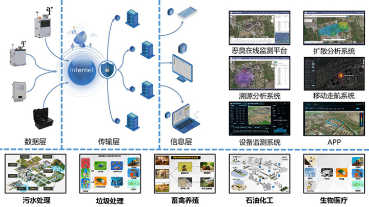 通过安装恶臭在线监测系统,可以实时在线监测环境空气,掌握污染物特征,建立预警管理系统,追溯污染排放源,制定减排方案。系统可广泛应用于化工园区、垃圾填埋场、污水处理厂、石油炼化、食品生产厂家、生物医药生产厂家、畜牧养殖厂、医院等场合。