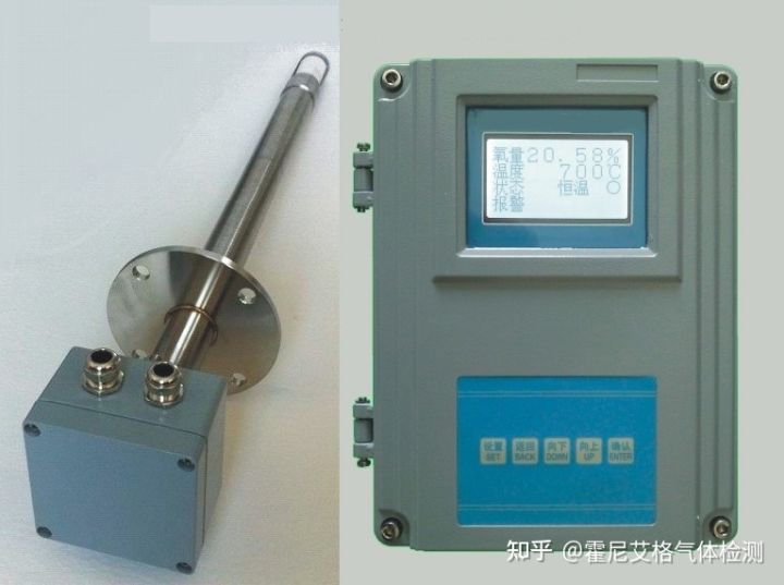 在氧化锆电解质的两面各烧结一个铂电极,当氧化锆两侧的氧分压不同时,氧分压高的一侧的氧以离子形式向氧分压低的一侧迁移,结果使氧分压高的一侧铂电极失去电子显正电,而氧分压低的一侧铂电极得到电子显负电,因而在两铂电极之间产生氧浓差电势。此电势在温度一定时只与两侧气体中氧气含量的差(氧浓差)有关。若一侧氧气含量已知(如空气中氧气含量为常数),则另一侧氧气含量(如烟气中氧气含量)就可用氧浓差电势表示,测出氧浓差电势,便可知道烟气中氧气含量。