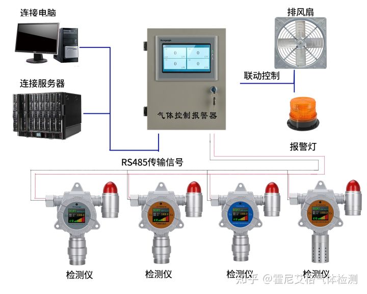 一号彩票 将采集到的气体浓度数据传送到控制系统,可以进行多台485设备组网,支持Modbus通讯协议。
